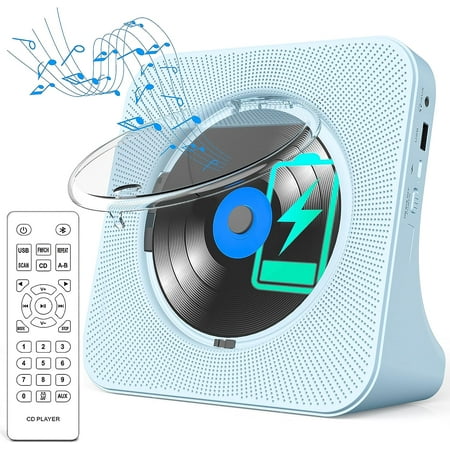 CD Player Portable Bluetooth Desktop 4000mAh Rechargeable CD Player with Remote Control for Home CD Player with Timer HiFi Speakers Dust Cover LCD Screen Display FM Radio-Blue