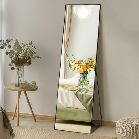 Gianna 64"x21" High-Quality Full Length Mirror, Aluminum Alloy Frame Ensures Stability, Standing Design for Bedroom, Black