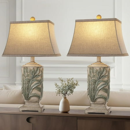 SparkGlowy 25" Vintage Table Lamps 3 Color Temperature Palace Retro Beside Lamp Set of 2, Resin Desk Lamp for Living Room