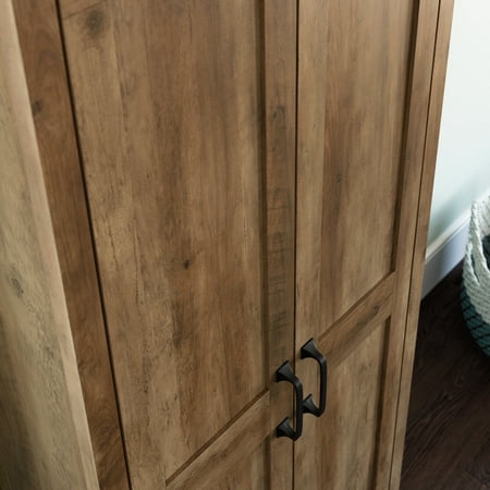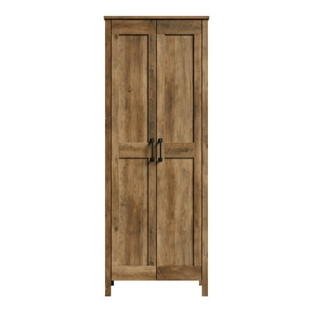 Are you running low on storage space? No more room in all your creative hideaway spaces? Well we have just the solution for you! Add versatile storage and an attractive addition to your home with this two door storage cabinet from the Sauder Select collection. Behind this storage cabinets two large doors are three shelves for you to store anything from linens, to holiday decorations, and everyday items like cleaning supplies. You can find room for it all! This double door storage cabinet includes two adjustable shelves that feature the ability to move to different heights to create flexible storage options for items of all shapes and sizes. The charming style and simplistic design of this storage cabinet with doors make it a great addition to any room in your home in the living room, down the hallway, in the entryway or even in your bathroom! Finished in Rural Pine and detailed with attractive hardware, this classic looking living room storage furniture will have you feeling organized in no time!
