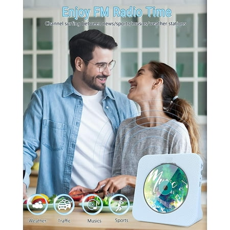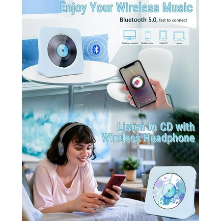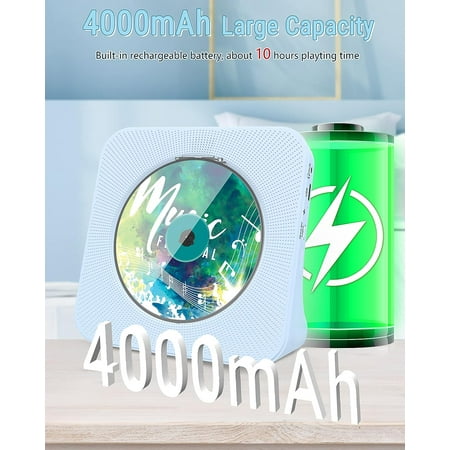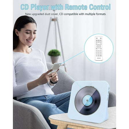 CD Player Portable Bluetooth Desktop 4000mAh Rechargeable CD Player with Remote Control for Home CD Player with Timer HiFi Speakers Dust Cover LCD Screen Display FM Radio-Blue