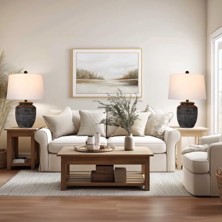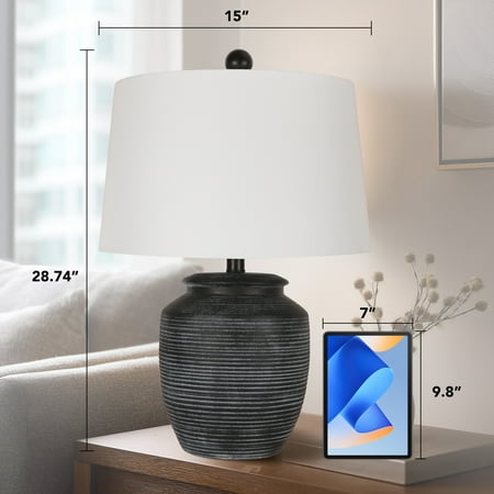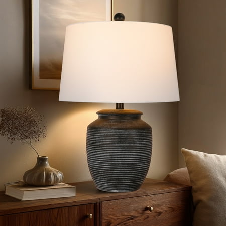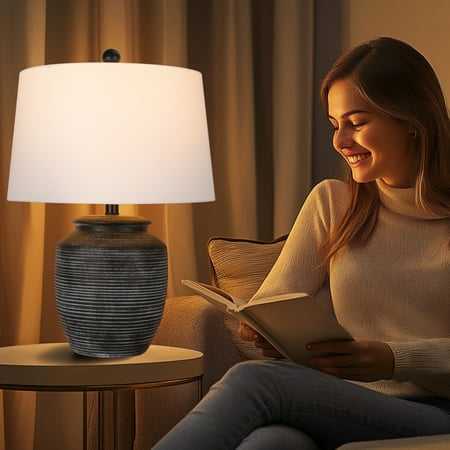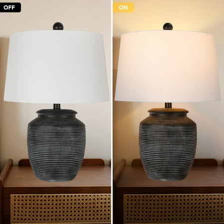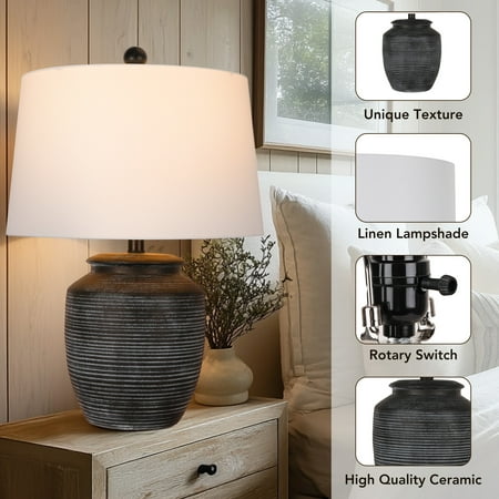 Farmhouse Ceramic Table Lamp: This Ceramic living room lamps boasts exquisite fine Black Vintage Ceramic Pot and linen lampshade , infusing an artistic atmosphere into your room. The Ceramic Pot table lamp doubles as both a warm night lamp and a stylish ornament, can easily fit into most decorative styles such as modern, classic, country, vintage, farmhouse, Northern Europe, boho and more.