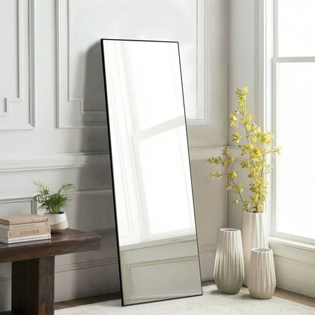 Our newly designed full-length aluminum alloy frame mirror. Measuring 64" in length and 21" in width, this mirror provides a complete view of your figure in a single glance. The sleek and durable aluminum alloy frame is only 0.23" in width and features a wire drawing treatment for a refined texture. The mirror is made with innovative explosion-proof nano-glass for superior clarity, durability, and safety. The mirror also includes an explosion-proof design on the reverse side for added protection. With no assembly required, this mirror can be placed in various locations, making it perfect for bedrooms, living rooms, checkrooms, home gyms, hallways, or clothing stores. Add elegance and positivity to your everyday with this functional and aesthetic piece.