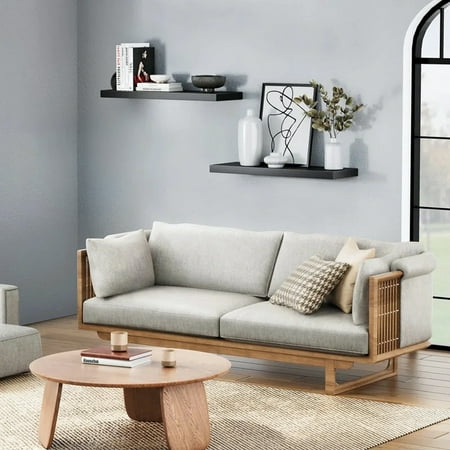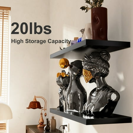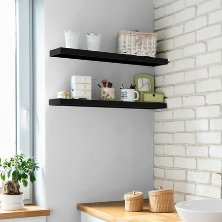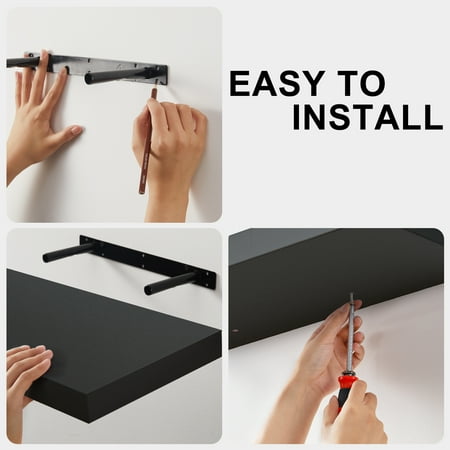 These wall shelves are great functional home decorations. Creating more space for your home. You can display books, and plants, and create a rustic, industrial style with this floating shelf set. These beautiful unique design wall shelves are made up of lightweight wood. Show off your style with an easy shelf display. Super easy to install, If you install it with seamless nails. Please do not put too many heavy things on it. This floating shelf can hold up to 20 lbs. Have a great vision for the space and easy to clean. Specifications: Board Material: MDF Style: Modern Product Dimensions: 23.6" D x 6.7" W x 1.5" H Max Hold Capacity for Each Board: 20lbs Mounting Type: Wall Mount Recommended Uses For Product: Bathroom, kitchen, dorm, living room, bedroom, hallway Assembly Tips: Before drilling into the wall, please confirm the style of the wall to choose suitable installation parts, different hand ware is suitable for different kind of wall (refer to detailed information in user manual).