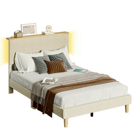 Bestier Full Size Bed Frame Upholstered Corduroy Platform Bed with LED light & Adjustable Storage Headboard for Bedroom is the perfect upgrade for your bedroom.The upholstered headboard is wrapped in soft and skin-friendly corduroy to provide you with comfortable back support. Its vertical channel design adds a touch of elegant to your bedroom. The widened storage shelf on adjustable headboard, you can easily keep common small items such as phones, glasses, and books within easy reach. Enjoy a neat and organized sleeping space. Besiter Bed Frame collection will bring you an organized lifestyle and make everything seem to be easier. Bestier Love coming home.