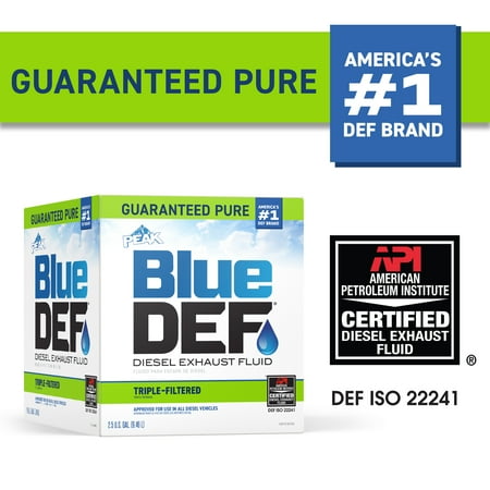 Improve your fuel economy and get cleaner emissions from your car when you add the BlueDEF Diesel Exhaust Fluid to your exhaust stream. BlueDEF is a non-flammable fluid that helps remove nitrogen oxide from your emissions. It converts the NOx into harmless nitrogen gas and water vapor. This mixture of urea and deionized water is completely water soluble, stable, colorless, and odorless. It comes in a convenient 2.5-gallon jug so you can store it in your trunk when you're running low and simply inject the fluid into your exhaust stream when you need it. Approved for use in all diesel vehicles with SCR systems, this exhaust fluid is versatile and can improve fuel economy by up to 5 percent. Please note, BlueDEF is not meant to be added to Diesel Fuel Tank. Make the earth and your wallet a little greener with BlueDEF Diesel Exhaust Fluid.